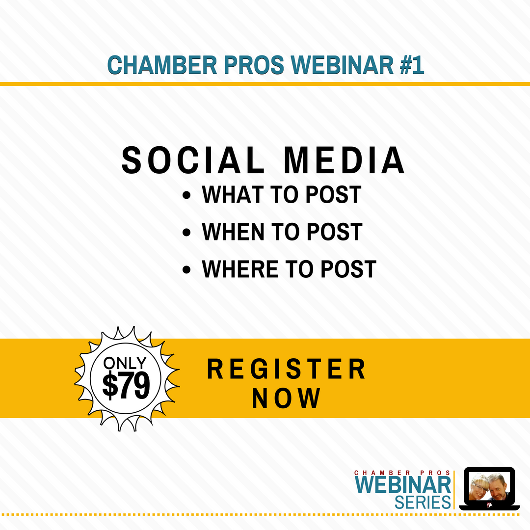 In the Chamber Pros Webinar Series, we will teach you and your team, using up to date and current info, what to post, where to post, how often to post, when to post, and how to get more engagement.