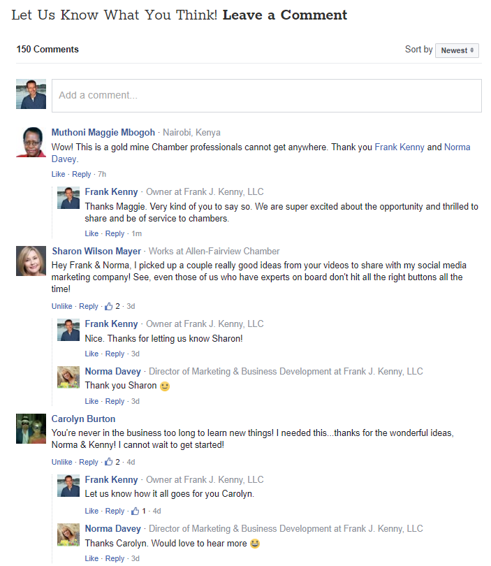 We will do this chamber training on a consistent and ongoing basis, so you and your chamber don’t fall behind.